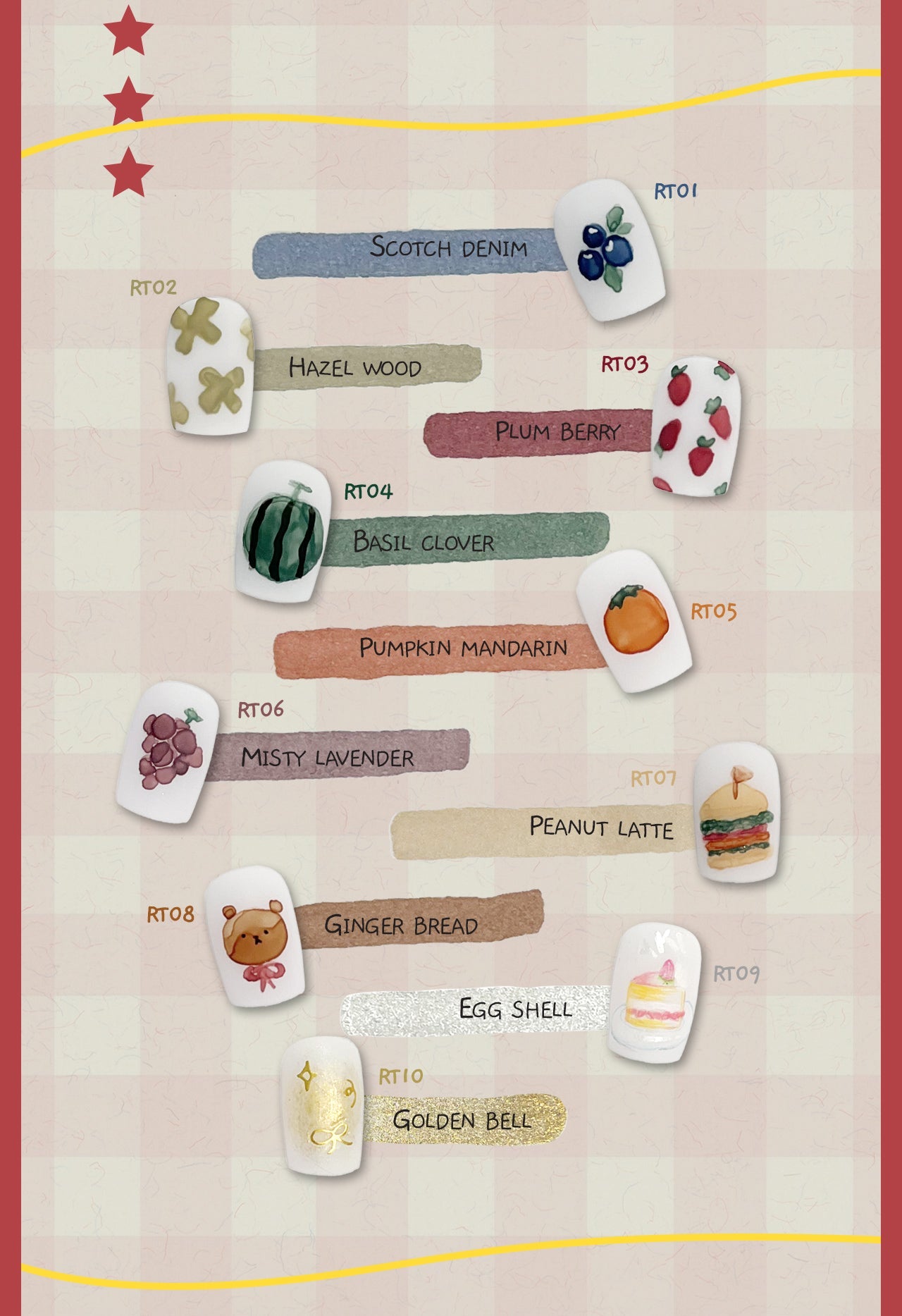 - 10 × 8 ml Nail Inks (RT01–RT10)